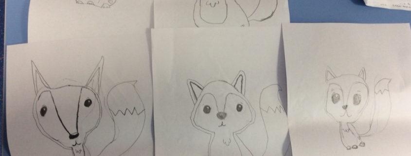 The children have been working hard in art, drawing lots of different animals.
